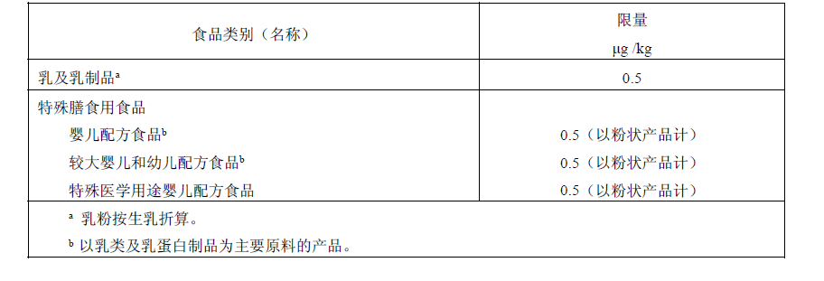 GB2761—2011食品安全國家標準食品中真菌毒素限量規定了食品中黃曲霉毒素M1限量指標。