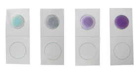 1.2:將潔凈度速測卡圓型藥片向上平放在臺面上。滴1滴檢測試劑B到圓型藥片上,如果物體表面較臟的話,1 min內藥片就會變為紫色,即可判定被檢物體不潔凈,否則需要等待10min與標準比色板進行比較確定結果。