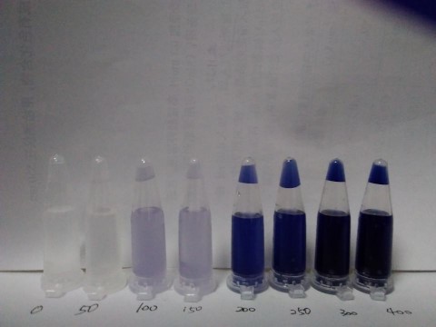 取0.5mL樣品液于離心管中,加入1 mL的檢測(cè)試劑,試劑立即與食鹽中的碘發(fā)生化學(xué)反應(yīng)而顯色.