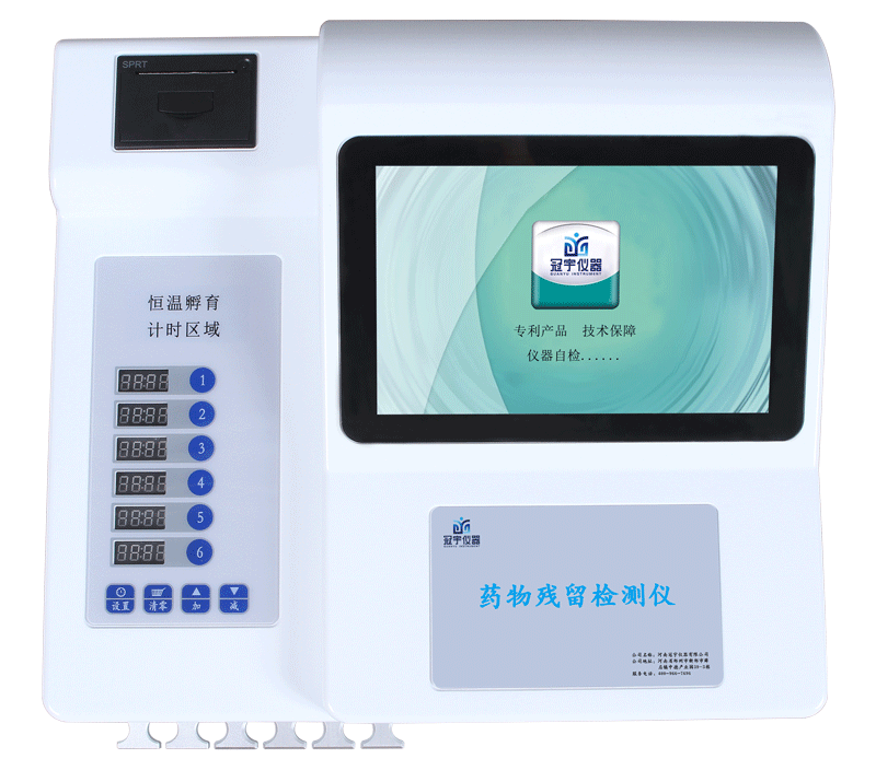 我國是一個農業大國,畜禽養殖業正在從分散式向集約化模式轉變,畜禽養殖廢水量不斷的增長,抗生素對周圍水體的污染將會更加的嚴重。現有的檢測技術還不能完全檢測到水體中的各種類的抗生素,所以隨著科學技術發展以及社會對畜禽廢水中抗生素污染的重視,一種簡便、快速、準確、高效以及廉價的檢測方法橫空出世——冠宇藥物殘留檢測儀。