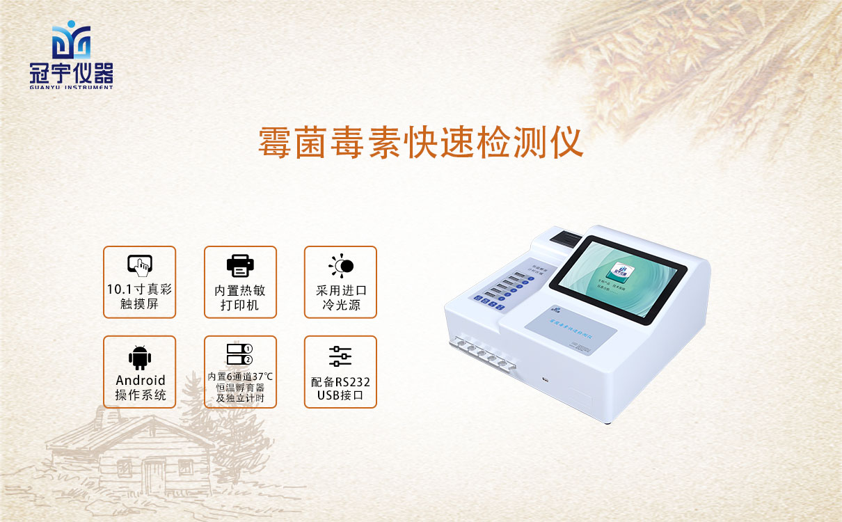 霉菌毒素快速測試儀能夠快速定量檢測糧食、飼料、谷物、食用油、調味品等食品中黃曲霉毒素、T2毒素、嘔吐毒素、赭曲霉毒素、伏馬毒素、玉米赤霉烯酮含量。