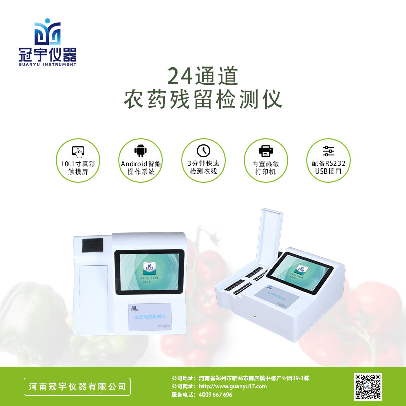 冠宇儀器農藥殘留檢測儀可以對瓜果蔬菜的農藥殘留進行準確的檢測和篩查,杜絕超標的農產品流入市場。可廣泛應用于各級政府蔬菜檢測中心、農貿市場、超市、環保機構、蔬菜種植基地、飯店、車載及實驗室等食品安全檢測與監控場所等單位對果蔬中農藥殘留的檢測。