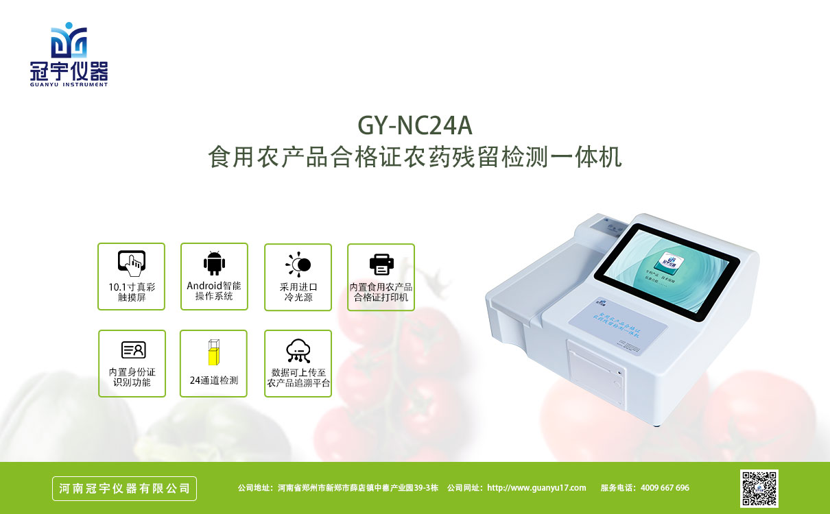 農藥殘留傷害不容忽視,相應的監管部門也應加強農藥殘留的監管檢控工作,維護好食品安全。冠宇儀器新一代智能型農藥殘留檢測儀;是根據農業標準方法(NY/T 448-2001)和國家標準(GB/T5009.199-2003)中的酶抑制率法,嚴格遵循《GB/T5009.199-2003蔬菜中有機磷和氨基甲酸酯類農藥殘留快速檢測方法標準》中的規定對蔬菜中有機磷和氨基甲酸酯類農藥殘留的快速檢測。可廣泛應用于各級政府蔬菜檢測中心、農貿市場、超市、環保機構、蔬菜種植基地、飯店、車載及實驗室等食品安全檢測與監控場所等單位對果蔬中農藥殘留的檢測。能準確、快速檢測出蔬菜、水果、糧食、茶葉以及土壤中有機磷和氨基甲酸脂類農藥殘留的快速檢測。
