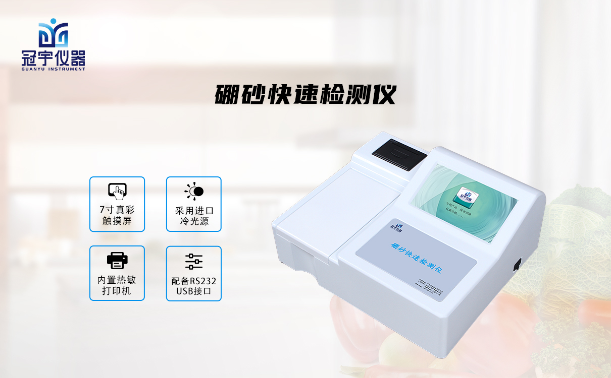 冠宇儀器硼砂快速檢測儀能夠快速檢測面條、腐竹、米粉、涼粉、涼皮、面條、餃子皮、餛飩、粽子、肉丸、涼皮、肉制品、乳與乳制品、醬油、人造奶油、葡萄酒等食品中的硼砂含量,適用于食品安全監(jiān)管中心、食品生產(chǎn)加工貿(mào)易自檢、市場監(jiān)督管理部門抽檢等。