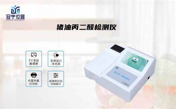 冠宇儀器豬油丙二醛檢測儀能夠快速檢測豬油,鴨油,植物,飼料,糧食等食品中丙二醛的含量。適用于食品監測中心、食品生產加工、食品加工貿易、畜禽養殖戶自查、工商質監部門用于市場快速篩查等