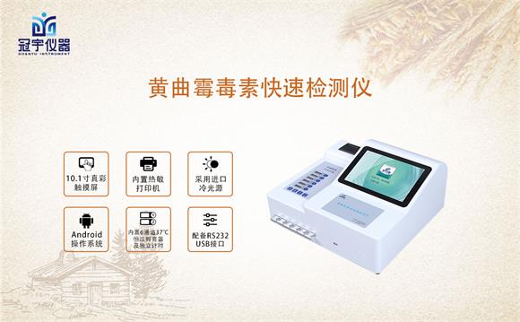 冠宇儀器黃曲霉毒素快速測試儀能夠快速定量檢測玉米、小麥、大米、大麥、小米和燕麥等谷物、飼料、面粉、食用油、調味品、乳及乳制品等中黃曲霉毒素B1、黃曲霉毒素M1的含量,適用于糧庫收糧檢測、食品監測中心、糧油飼料生產加工、食品加工貿易、畜禽養殖戶自查、工商質監部門用于市場快速篩查等。