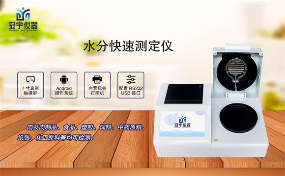 冠宇儀器食品水分測定儀在檢測樣品時可以做到表面不易受損,其檢測結果與國標烘箱法具有良好的一致性,具有可替代性,且檢測效率遠遠高于烘箱法。快速水分測定儀智能化操作,一般樣品只需幾分鐘即可完成測定,是一種新型的快速檢測儀器。 同時可廣泛應用于一切需要快速測定水分的行業,如,糧食、飼料、種子、菜籽,脫水蔬菜、煙草、化工、茶葉、食品、肉類以及紡織,農林、造紙、橡膠、塑膠、紡織等行業中的實驗室與生產過程中對水分測定的要求;同時滿足固體、顆粒、粉末、膠狀體及液體含水率的測定。