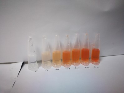 1.3:然后用吸管吸取浸泡液0.5 mL (約10滴)于比色管中,加入6滴檢測液,觀察顏色變化。